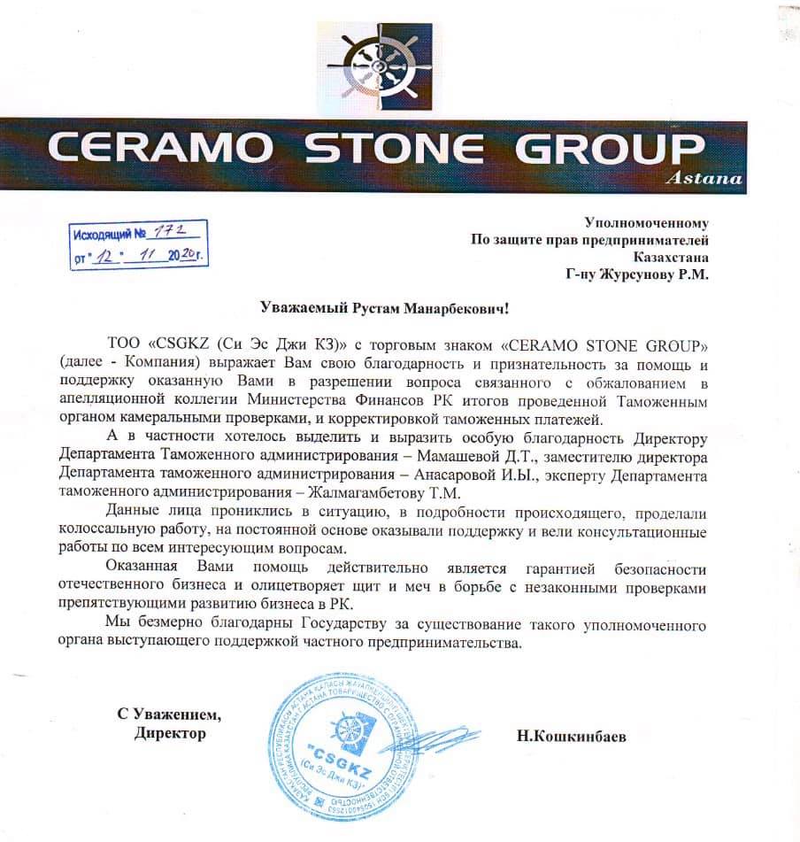По результатам рассмотрения жалобы на заседании Апелляционной комиссии Министерства финансов Республики Казахстан, состоявшемся 5 ноября 2020 года, с учетом позиции члена Апелляционной комиссии от НПП РК «Атамекен» Мамашевой Д.Т., жалоба была удовлетворена в полном объеме в пользу ТОО «CSGКZ».